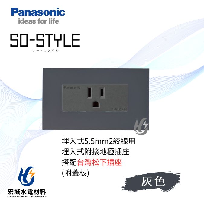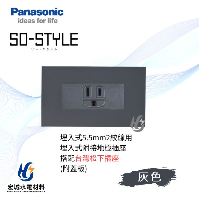 國際牌 SO-STYLE 消光直角 5.5線徑埋入式單插座 日本製 霧灰蓋板 搭配台灣松下插座