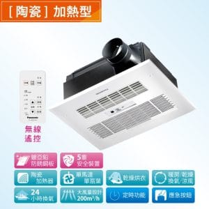 功能:鍍亞鉛防銹鋼板、5重安全裝置、單馬達單扇葉、暖房/乾燥/換氣/涼風、乾燥烘衣丶 24小時換氣、大風量200m3/h、定時功能、應急按鈕