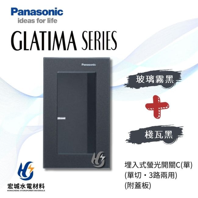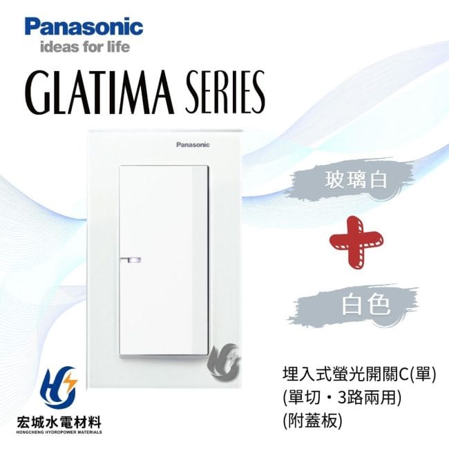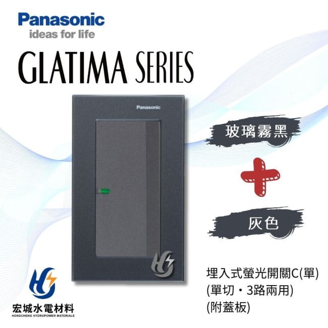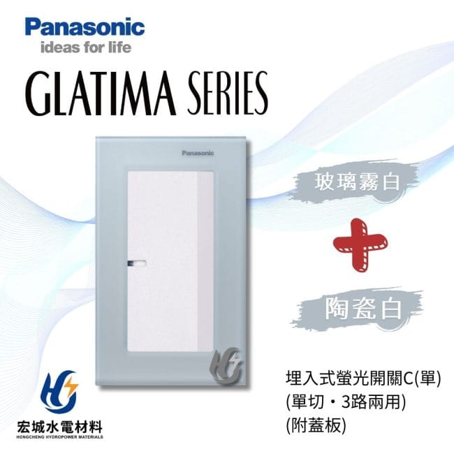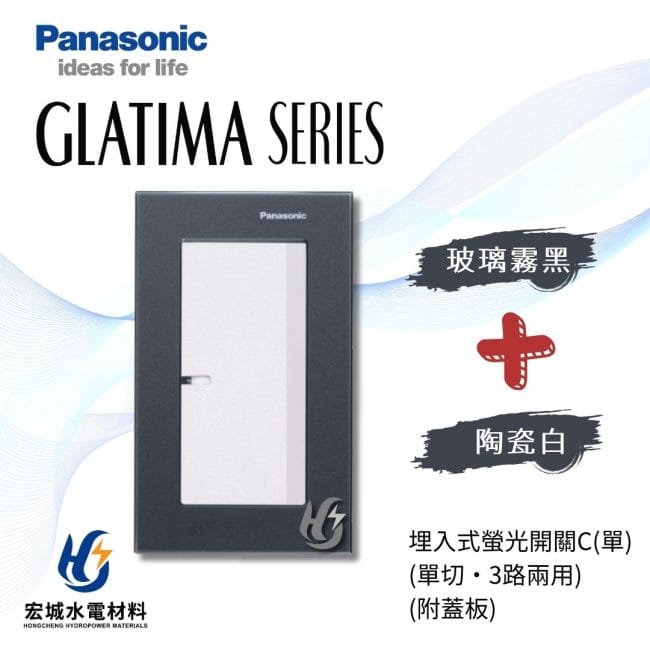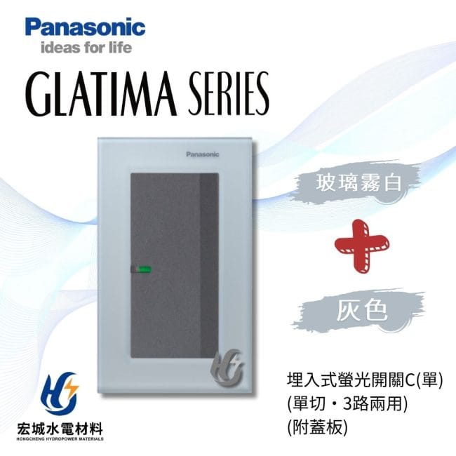 國際牌GLATIMA系列, 國際牌 GLATIMA 玻璃蓋板系列(開關), 國際牌 GLATIMA 系列(開關), 開關, Panasonic 國際牌國際牌 GLATIMA 埋入式螢光開關 一開 附玻璃蓋板 WTGF5152 霧白_霧黑