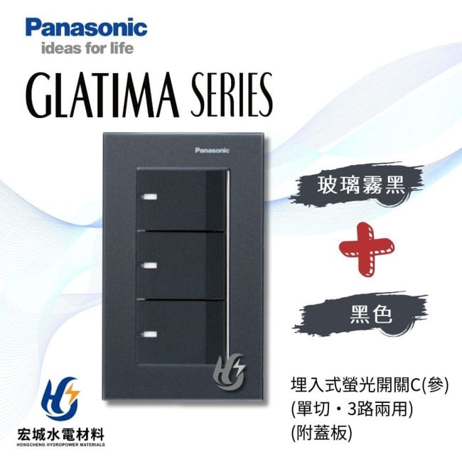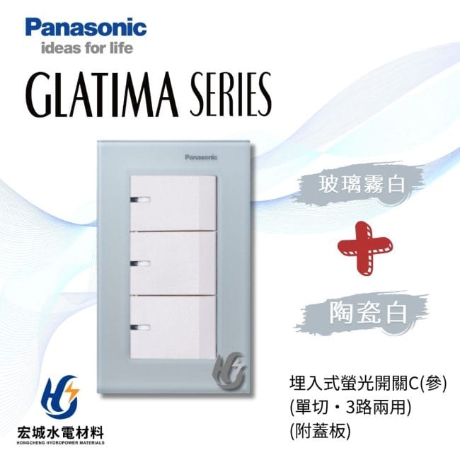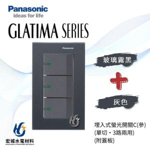國際牌GLATIMA系列, 國際牌 GLATIMA 玻璃蓋板系列(開關), 國際牌 GLATIMA 系列(開關), 開關, Panasonic 國際牌國際牌 GLATIMA 埋入式螢光開關 三開 附玻璃蓋板 WTGF5352 霧白_霧黑