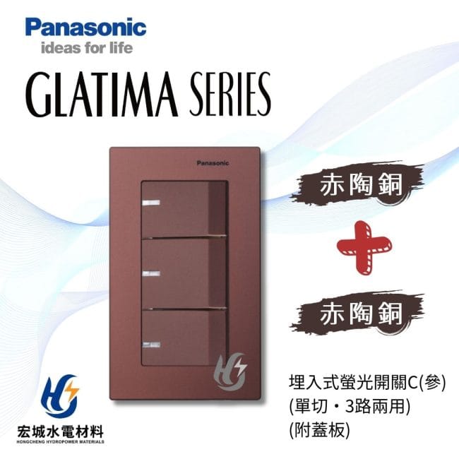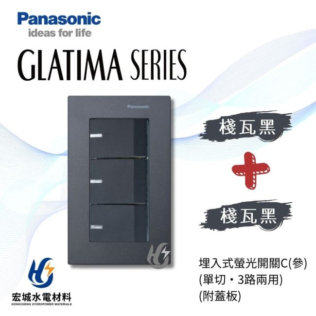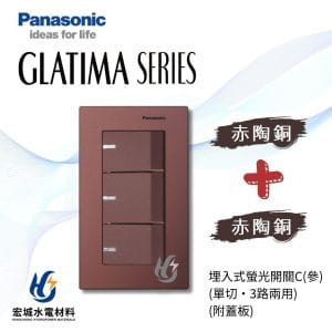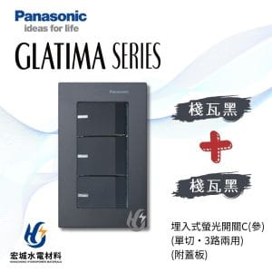 國際牌 GLATIMA 埋入式螢光開關 三開 附蓋板 WTGF5352 棧瓦黑_赤陶銅_青炭灰
