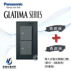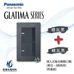 國際牌 GLATIMA 埋入式螢光開關 二開 附蓋板 WTGF5252 棧瓦黑_赤陶銅_青炭灰