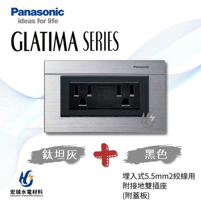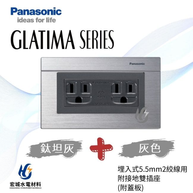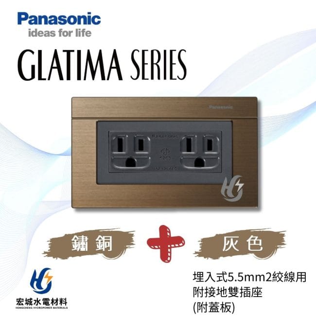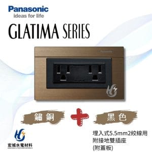 國際牌 GLATIMA 埋入式5.5mm附接地極雙插座 附蓋板 WTGP15126 鈦坦灰_鏽銅
