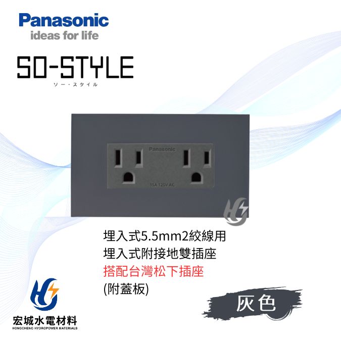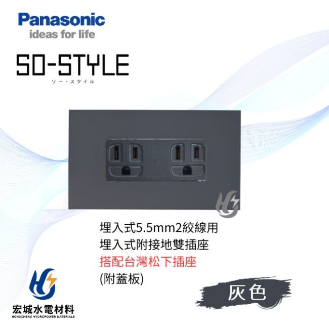 國際牌 SO-STYLE系列, 國際牌SO-STYLE系列(插座), 插座, Panasonic 國際牌國際牌 SO-STYLE 消光直角 5.5線徑埋入式雙插座 日本製 霧灰蓋板 搭配台灣松下插座