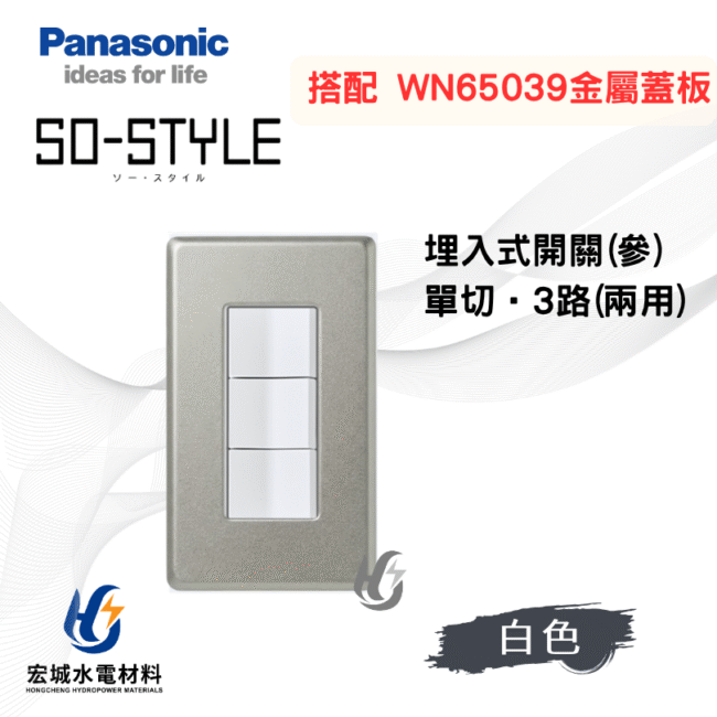 國際牌 WN65039 新金屬蓋板+SO STYLE 三開開關模組 日本製 三色可選