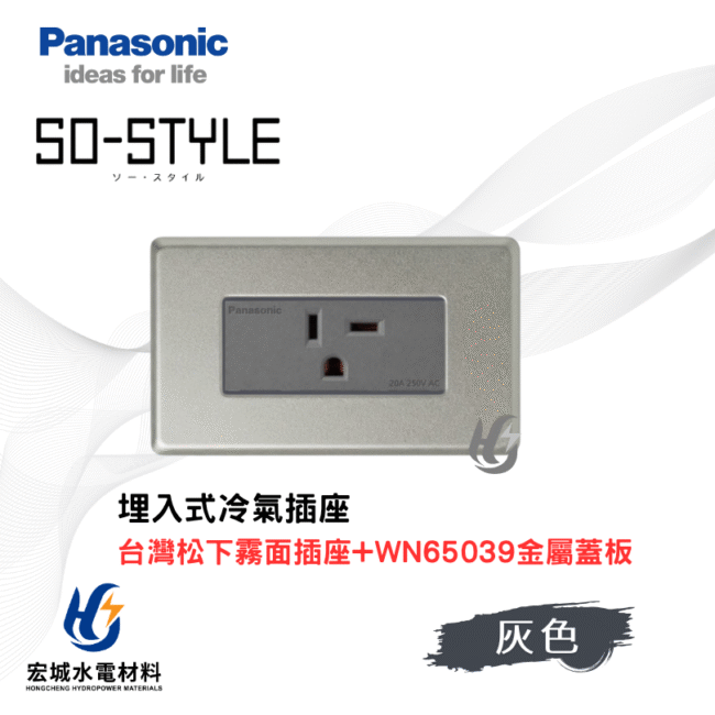 國際牌 WN65039 新金屬蓋板+霧面冷氣插座組 日本製蓋板 台灣松下插座 220V專用 三色可選