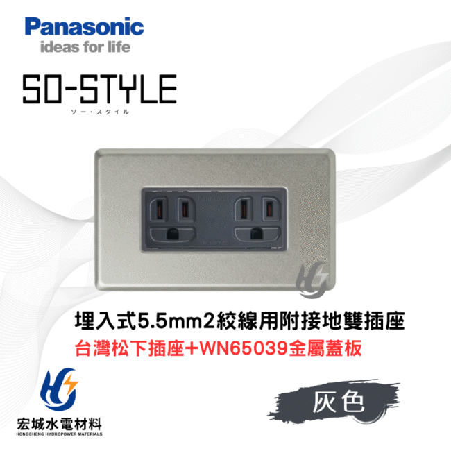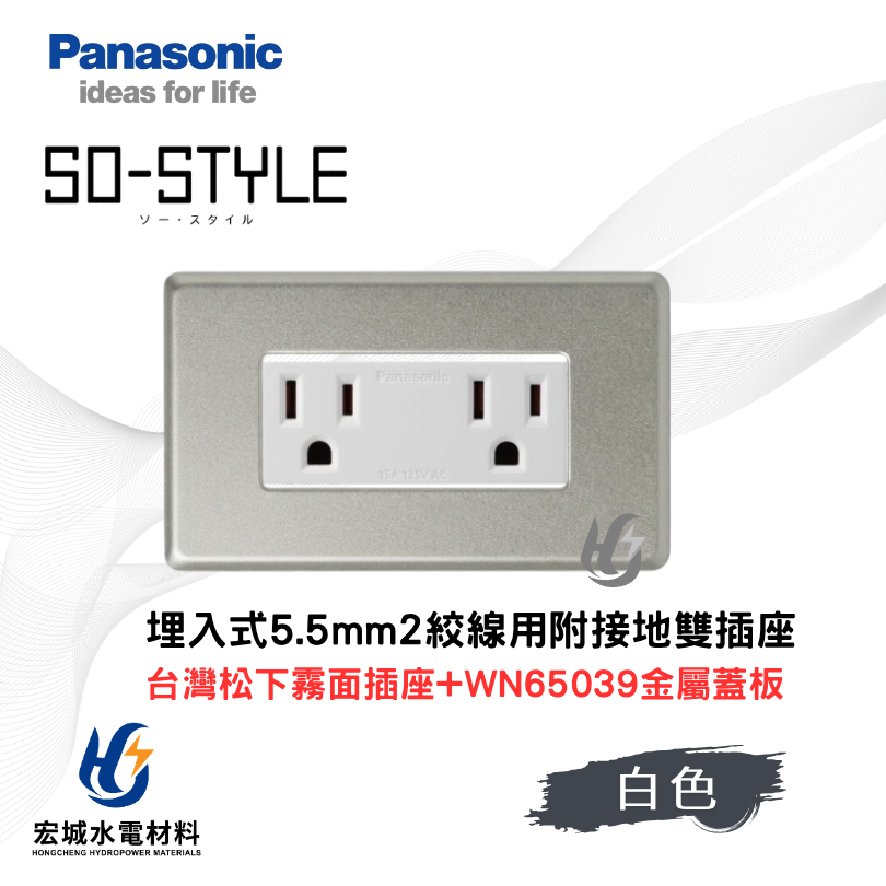 國際牌 SO-STYLE系列, 國際牌SO-STYLE系列(插座), 國際牌金屬蓋板系列(插座), 國際牌金屬蓋板系列, 插座, Panasonic 國際牌國際牌 WN65039 新金屬蓋板+5.5雙插座組 日本製蓋板 台灣松下插座 白色|灰色