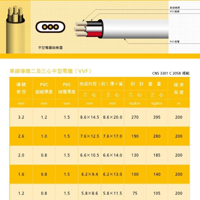 • 600V聚氣乙烯絕緣及被覆電纜(600V PVC電纜)(代號VV)
