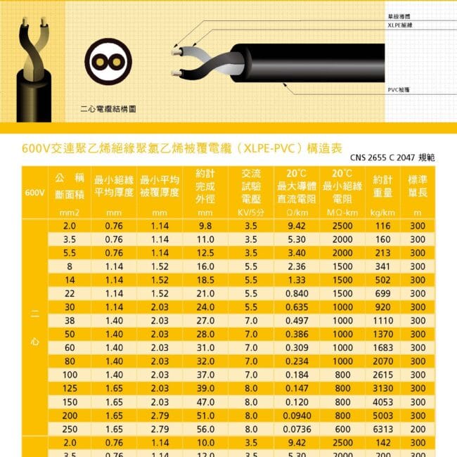 • 被覆材料可選擇聚氯乙烯(PVC)或聚乙烯(PE),太平洋電線電纜公司另推薦低煙無毒材