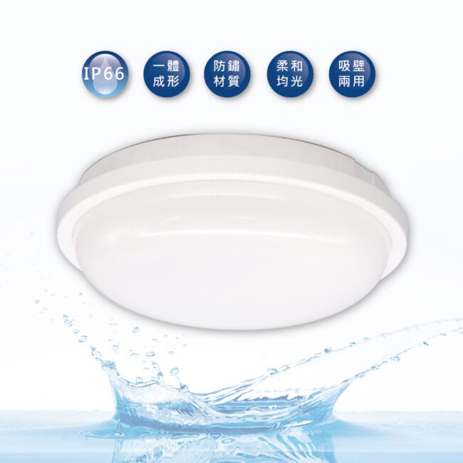 兩用安裝方式:吸頂/壁掛 應用空間廣泛:戶外、浴室、陽台、靠海建築