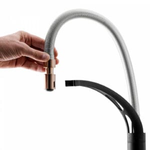 • 備註:黑色烤漆X玫瑰金、省水起泡頭濾網/輕鬆清洗起泡頭濾網、二段式陶瓷閥芯、高品質軟管握把、可活動及收納式軟管、軟管(不含握把長度):50CM、支架-黑色塑膠