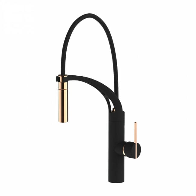 - 品名:JUN廚房無鉛龍頭-黑X玫瑰金