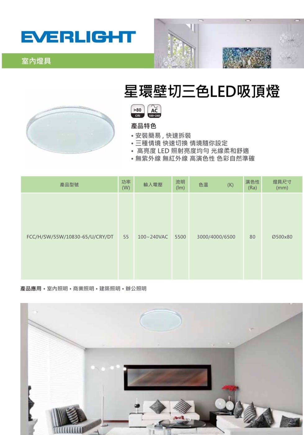 EVERLIGHT 億光 吸頂燈, EVERLIGHT 億光, 照明燈具, 吸頂燈EVERLIGHT 億光 星環壁切三色LED吸頂燈 55W 黃光/自然光/白光 三色切換
