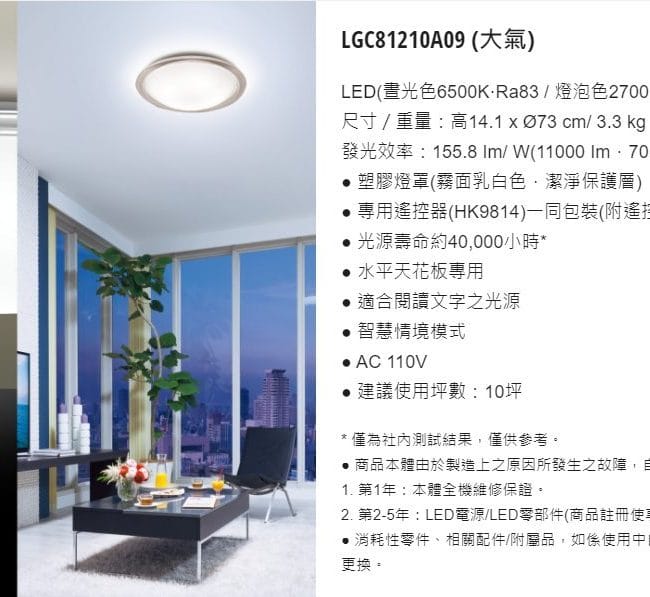 * 日本照明工業公會制定LED器具之「適用坪數」作為參考依據, Panasonic 使用坪數基準確實將光源擴散到客廳所有角落。