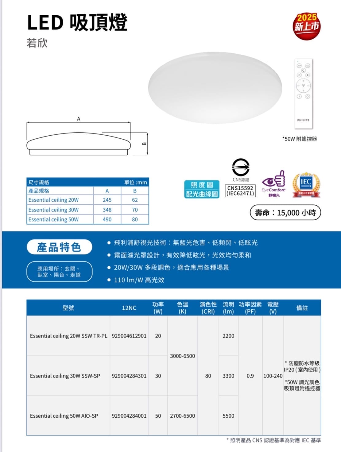 / PHILIPS 飛利浦 LED吸頂燈 若欣 遙控款 可調光可調色 20W/30W/50W